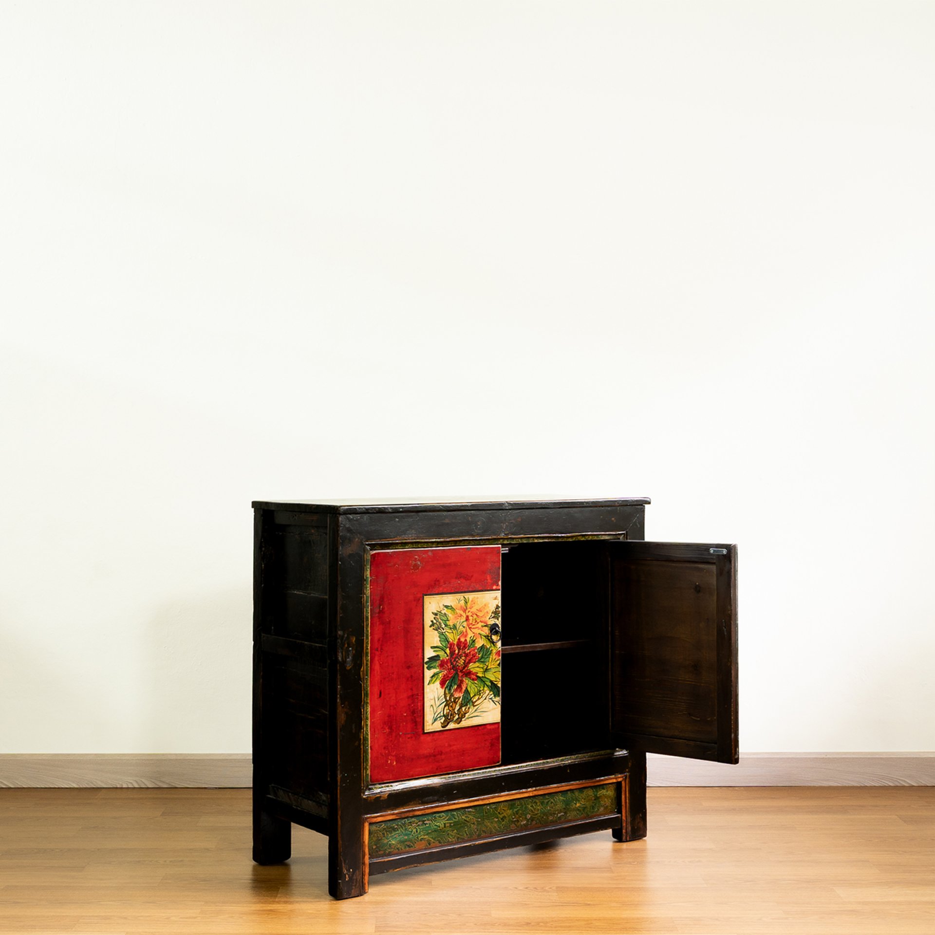 Beautifully restored Chinese small cabinet,with original Chinese florals painting.